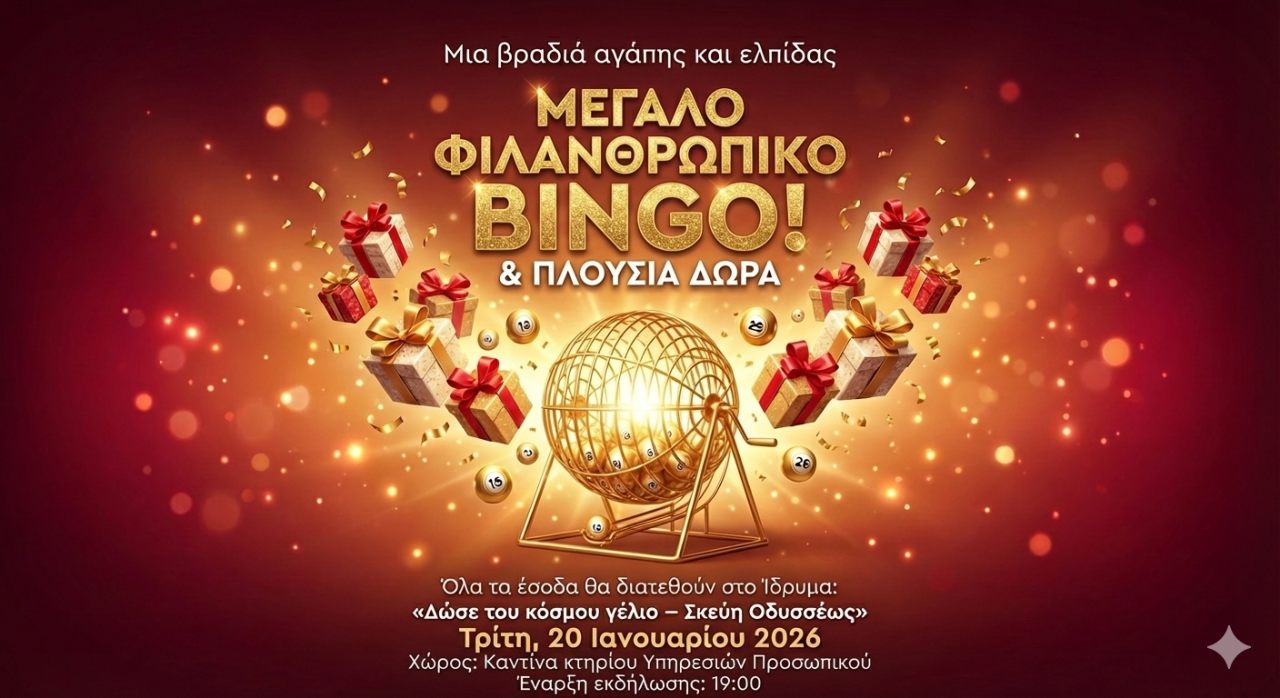 Θα θέλαμε να εκφράσουμε τις πιο θερμές μας ευχαριστίες για τη γενναιόδωρη υποστήριξή των χορηγών μας. Χάρη στα δώρα τους, έχουμε τη δυνατότητα να διοργανώσουμε το φιλανθρωπικό bingo, που θα ωφελήσει σημαντικά το ίδρυμα «Δώσε του κόσμου γέλιο – Σκεύη Οδυσσέως». Το ίδρυμα αυτό παρέχει πολύτιμη οικονομική βοήθεια στους συνανθρώπους μας, ώστε να ταξιδέψουν στο εξωτερικό για αναγκαίες ιατρικές επεμβάσεις.